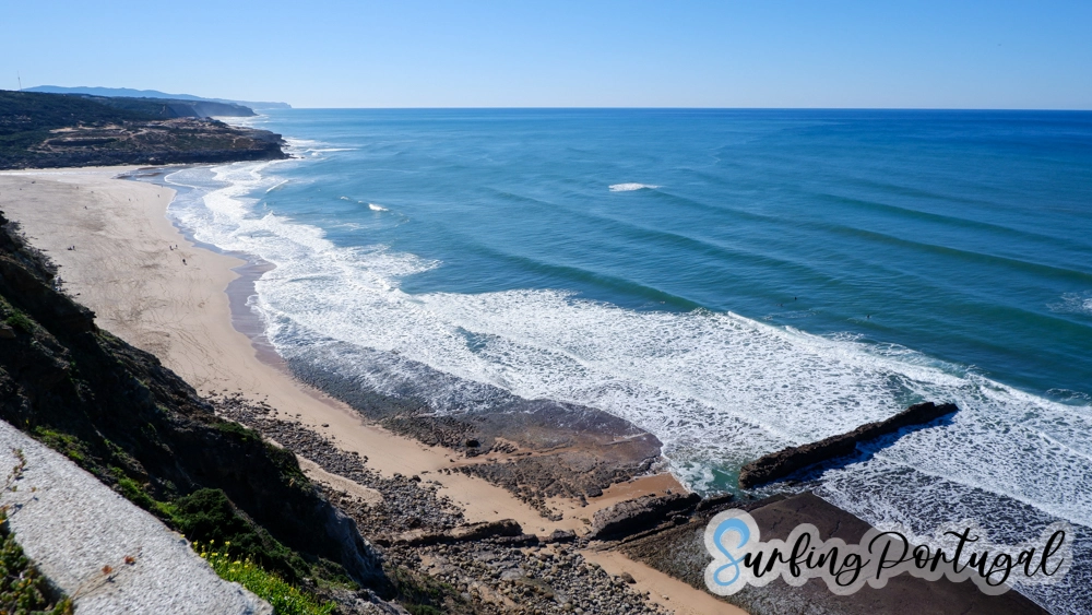 Foz do Lizandro is located in the municipality of Ericeira, in the border with its neighbour town Carvoeira. With its white sand and crystal-clear waters, the beach is ideal for beginners and intermediate surfers, as well as seasoned surfers sometimes. It is surrounded by cliffs and a beautiful landscape, making it also a great place for families and sunbathers to enjoy the summer sunshines and relax.